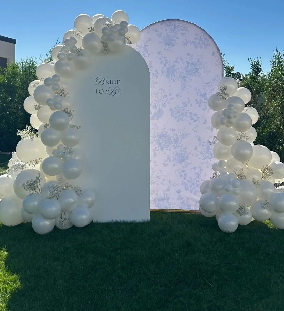 We have arch backdrops, shimmer backdrops, other custom backdrops and limited LED signs for rent with your balloon order.